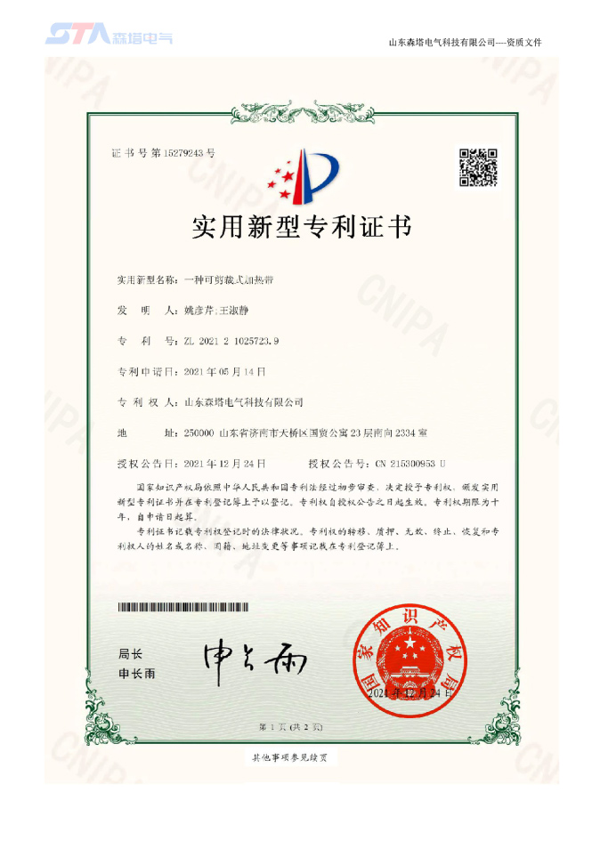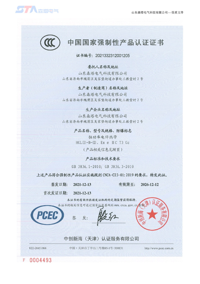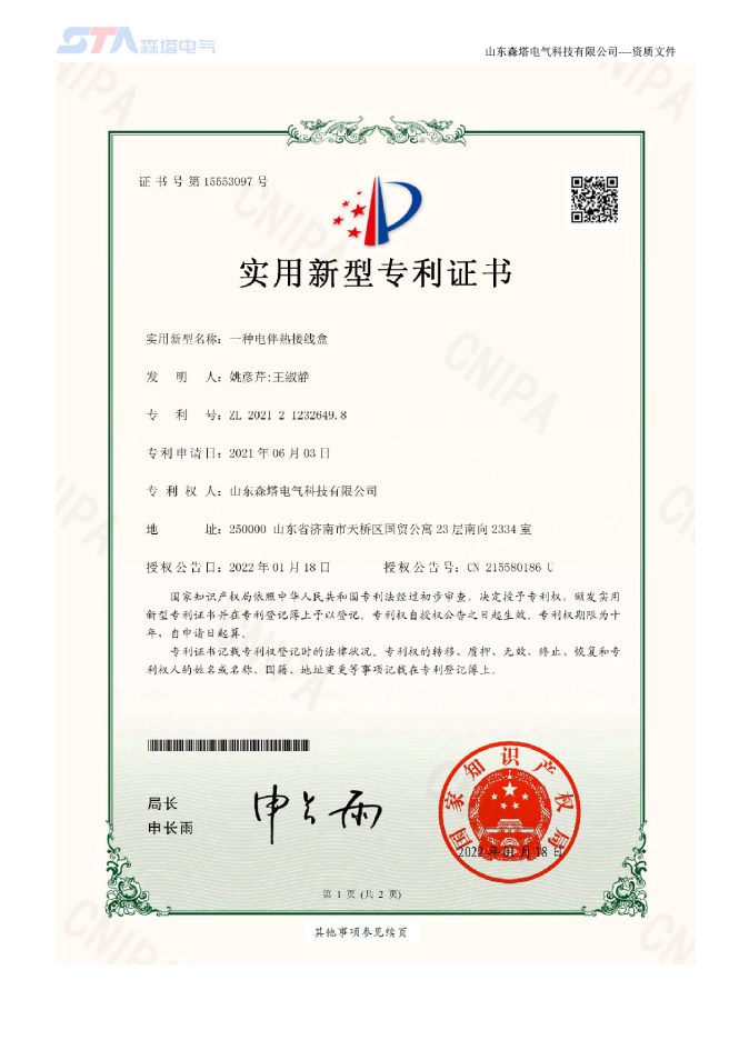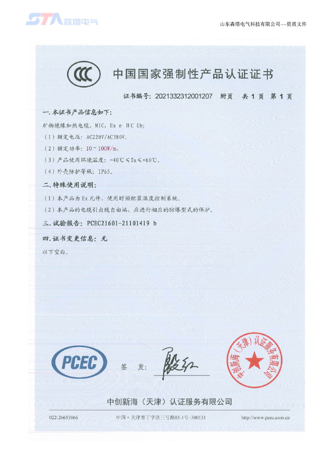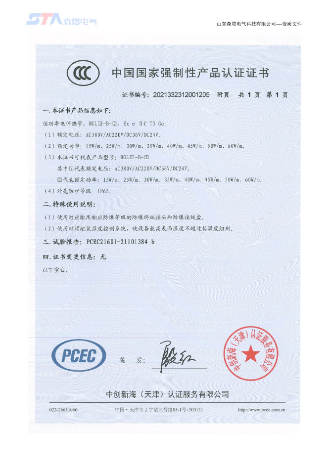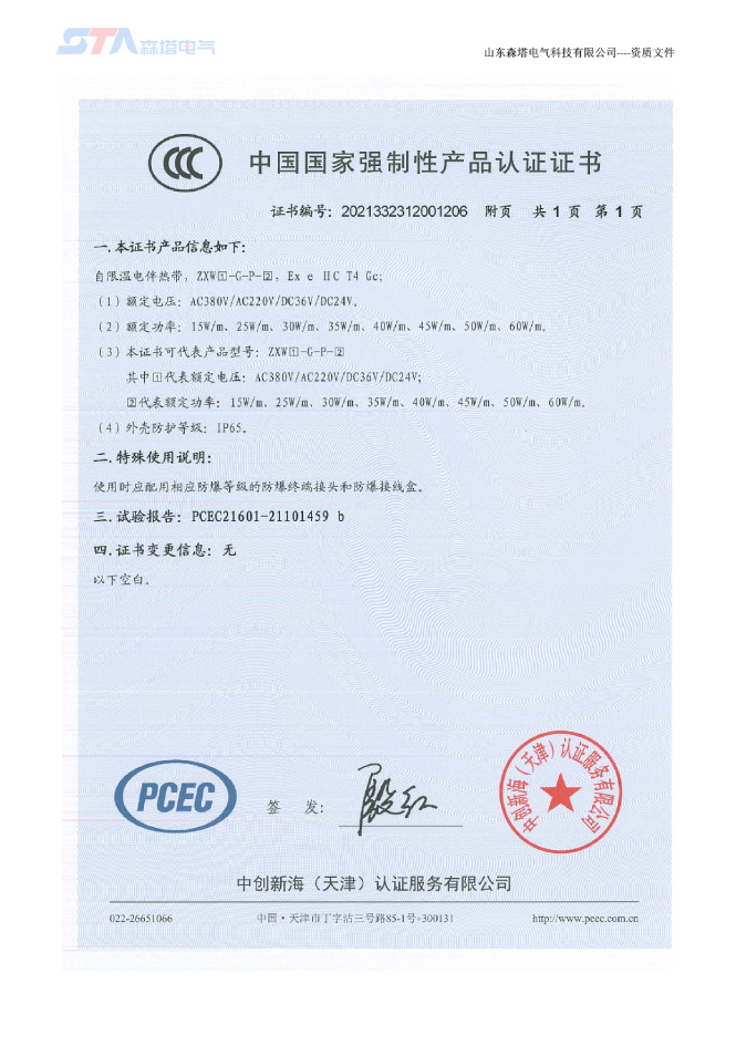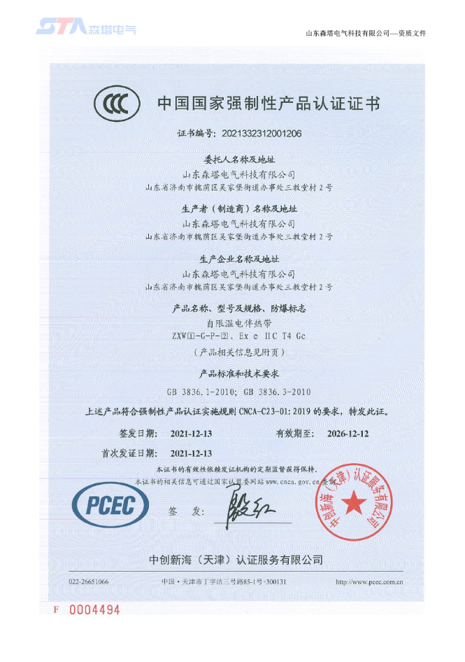 山東森塔電氣科技有限公司成立于2017年3月,位于美麗的泉城濟南,交通十分便利。公司主要從事電熱產品的開發、研究與制造、電伴熱和電加熱工程的咨詢和設計、產品的生產制造及安裝。是中國電伴熱生產廠商之一,以優異的生產技術站立于電伴熱行業市場,產品通過了“國家防爆電氣產品質量監督檢驗中心”的防爆檢驗,取得了防爆合格證。產品主要應用于鋼鐵、新能源、石化、建材、鐵路建設、環保、電力等領域。